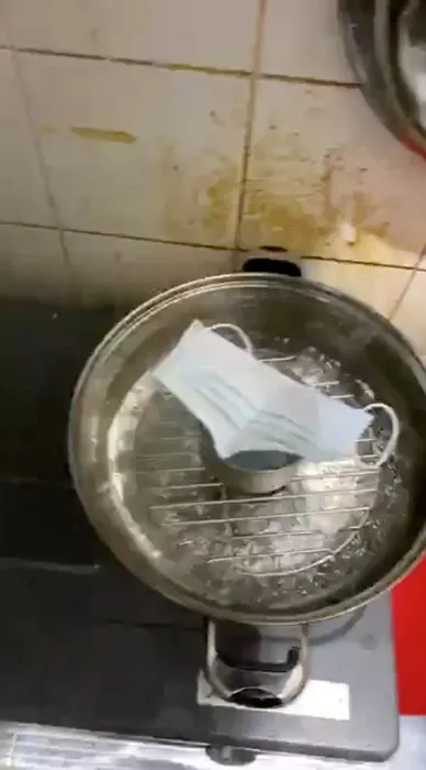Salgından korunmak isteyenler kullandıkları cerrahi yüz maskelerini dezenfekte etmek için bir wok tava içerisinde buharlaştırmaya çalışıyor.